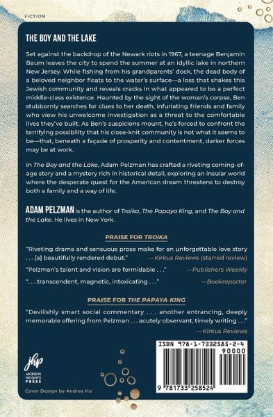 "The Boy and the Lake is a poignant and haunting coming-of-age story ... a multifaceted, evocative and masterfully told tale." -Lynda Cohen Loigman, USA Today bestselling author of The Two-Family House and The Wartime Sisters "Pelzman excels at creating an intensely atmospheric setting and revealing how it shapes his characters' identities and worldviews ... The narrative is full of rich, descriptive language ... a well-developed vintage setting and classic but thought-provoking coming-of-age theme." -Kirkus Reviews Set against the backdrop of the Newark riots in 1967, a teenage Benjamin Baum leaves the city to spend the summer at an idyllic lake in northern New Jersey. While fishing from his grandparents' dock, the dead body of a beloved neighbor floats to the water's surface-a loss that shakes this Jewish community and reveals cracks in what appeared to be a perfect middle-class existence. Haunted by the sight of the woman's corpse, Ben stubbornly searches for clues to her death, infuriating friends and family who view his unwelcome investigation as a threat to the comfortable lives they've built. As Ben's suspicions mount, he's forced to confront the terrifying possibility that his close-knit community is not what it seems to be-that, beneath a façade of prosperity and contentment, darker forces may be at work. In The Boy and the Lake, Adam Pelzman has crafted a riveting coming-of-age story and a mystery rich in historical detail, exploring an insular world where the desperate quest for the American dream threatens to destroy both a family and a way of life. Praise for Adam Pelzman's A Cuban Russian American Love Story "Riveting drama and sensuous prose make for an unforgettable love story ... [a] beautifully rendered debut." -Kirkus Reviews (starred review) "Pelzman's talent and vision are formidable ..." -Publishers Weekly "... transcendent, magnetic, intoxicating ..." -Bookreporter Praise for Adam Pelzman's The Papaya King "Devilishly smart social commentary ... another entrancing, deeply memorable offering from Pelzman ... acutely observant, timely writing ..." -Kirkus Reviews