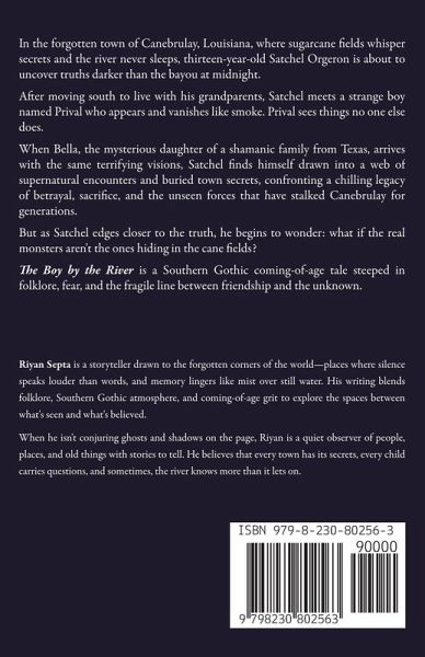 In the forgotten town of Canebrulay, Louisiana, where sugarcane fields whisper secrets and the river never sleeps, thirteen-year-old Satchel Orgeron is about to uncover truths darker than the bayou at midnight. After moving south to live with his grandparents, Satchel meets a strange boy named Prival who appears and vanishes like smoke. Prival sees things no one else does. When Bella, the mysterious daughter of a shamanic family from Texas, arrives with the same terrifying visions, Satchel finds himself drawn into a web of supernatural encounters and buried town secrets, confronting a chilling legacy of betrayal, sacrifice, and the unseen forces that have stalked Canebrulay for generations. But as Satchel edges closer to the truth, he begins to wonder: what if the real monsters aren't the ones hiding in the cane fields? The Boy by the River is a Southern Gothic coming-of-age tale steeped in folklore, fear, and the fragile line between friendship and the unknown.