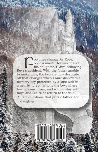Roye, the master toymaker, and his daughter Claire were once rich. That was when Roye made intricately designed toys that rich merchants and royalty would buy. But an accident changed all that and now father and daughter are destitute. All changes for Roye and his daughter when Claire discovers a starving mystery boy protected by a lone wolf in the nearby forest. Cared for by Roye and the nuns, the boy, Trystan, slowly gains in strength. Claire's beautiful singing heals Trystan's wounded spirit and awakens his talent for toy making. But questions remain: who is the boy, where has he come from, and will he remain with Roye and Claire or return to the wild? This is a Christmas story of hope and redemption for all.