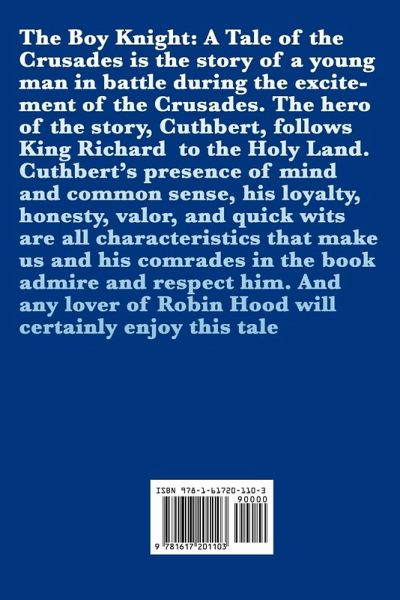 The Boy Knight: A Tale of the Crusades is the story of a young man in battle during the excitement of the Crusades. The hero of the story, Cuthbert, follows King Richard to the Holy Land. Cuthbert's presence of mind and common sense, his loyalty, honesty, valor, and quick wits are all characteristics that make us and his comrades in the book admire and respect him. And any lover of Robin Hood will certainly enjoy this tale.