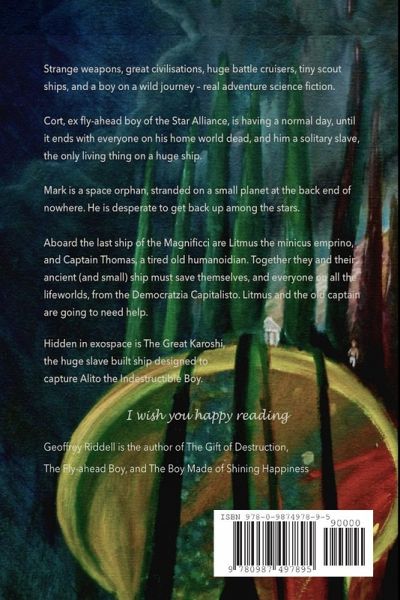 This book is about being a boy forever. One boy and his space ship are part of an endless war. There is only a very long and uncertain way home. But Litmus is up for the challenge, and, most of the time, he is busy just having fun being himself.