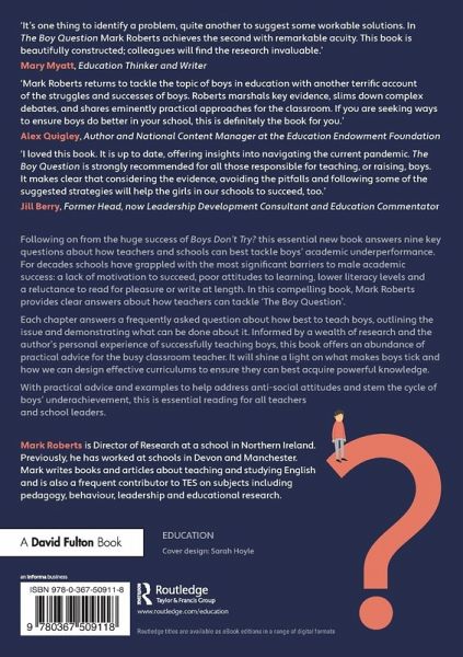 This essential new book answers nine key questions about how teachers and schools can best tackle boysâ academic underperformance. Mark Roberts provides clear answers about how teachers can tackle â The Boy Questionâ .