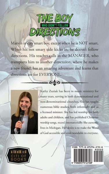 Marvin is very smart boy, except when he is NOT smart. When his not smart side kicks in, he doesn't follow directions. His teacher calls in the MANAGER, who transports him to another dimension, where he makes a new friend, has an amazing adventure and learns that directions are for EVERYONE.