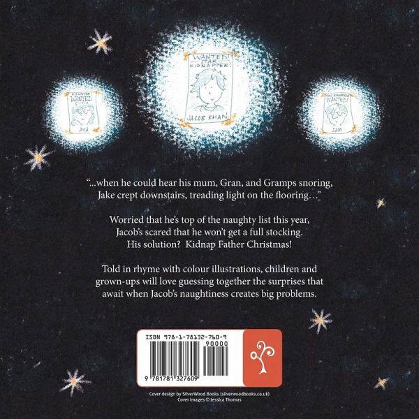 "...when he could hear his mum, Gran, and Gramps snoring, Jake crept downstairs, treading light on the flooring… Jacob worries that he's top of the naughty list this year. So, he decides to kidnap Father Christmas to make sure he still gets a full stocking. Told in rhyme, with beautiful colour illustrations, children and grown-ups will love guessing together the shocks and surprises that await Jacob when his naughtiness creates big problems.