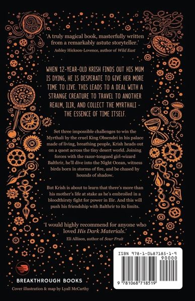 'Exhilarating. Full of wonder and adventure.' Irenosen Okojie, author of Curandera 'A truly magical book, masterfully written from a remarkably astute storyteller.' Ashley Hickson-Lovence, author of Wild East WHEN 12-YEAR-OLD KRISH FINDS OUT HIS MUM IS DYING, HE IS DESPERATE TO GIVE HER MORE TIME TO LIVE. THIS LEADS TO A DEAL WITH A STRANGE CREATURE TO TRAVEL TO ANOTHER REALM, ILIR, AND COLLECT THE MYRTHALI - THE ESSENCE OF TIME ITSELF. Set three impossible challenges to win the Myrthali by the cruel King Obsendei in his palace made of living, breathing people, Krish heads out on a quest across the tiny desert world. Joining forces with the razor-tongued girl-wizard Balthrir, he'll dive into the Night Ocean, witness birds born in storms of fire, and be chased by hounds of shadow. But Krish is about to learn that there's more than his mother's life at stake as he's embroiled in a bloodthirsty fight for power in Ilir. And this will push his friendship with Balthrir to its limits. 'I would highly recommend for anyone who loved His Dark Materials.' Eli Allison, author of Sour Fruit Book 1 in the exhilarating Myrthali Series, second edition published by Breakthrough Books, crafted by humans, for humans. Look out for book 2, The Dream-Pedlars' Parade!
