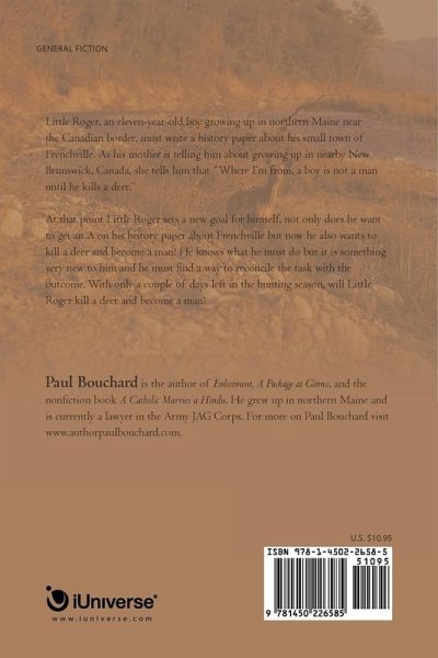 Little Roger, an eleven-year-old boy growing up in northern Maine near the Canadian border, must write a history paper about his small town of Frenchville. As his mother is telling him about growing up in nearby New Brunswick, Canada, she tells him that "Where I'm from, a boy is not a man until he kills a deer." At that point Little Roger sets a new goal for himself, not only does he want to get an A on his history paper about Frenchville but now he also wants to kill a deer and become a man! He knows what he must do but it is something very new to him and he must find a way to reconcile the task with the outcome. With only a couple of days left in the hunting season, will Little Roger kill a deer and become a man?