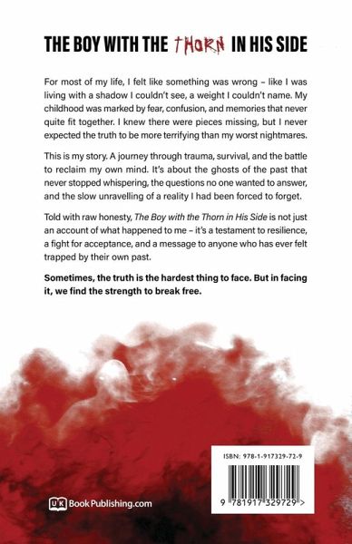 For most of my life, I felt like something was wrong - like I was living with a shadow I couldn't see, a weight I couldn't name. My childhood was marked by fear, confusion, and memories that never quite fit together. I knew there were pieces missing, but I never expected the truth to be more terrifying than my worst nightmares. This is my story. A journey through trauma, survival, and the battle to reclaim my own mind. It's about the ghosts of the past that never stopped whispering, the questions no one wanted to answer, and the slow unravelling of a reality I had been forced to forget. ¿¿¿¿¿¿¿ Told with raw honesty, The Boy with the Thorn in His Side is not just an account of what happened to me - it's a testament to resilience, a fight for acceptance, and a message to anyone who has ever felt trapped by their own past. Sometimes, the truth is the hardest thing to face. But in facing it, we find the strength to break free.