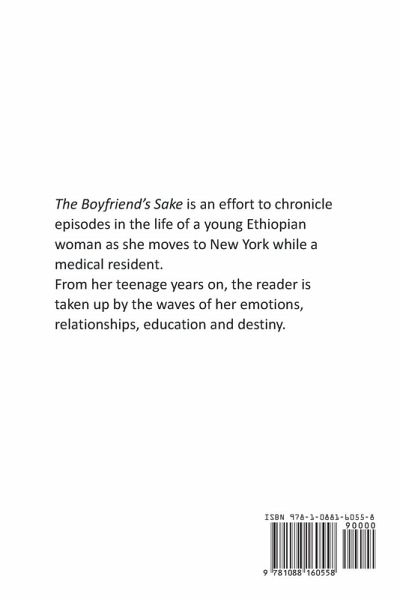 The Boyfriend's Sake is an effort to chronicle episodes in the life of a young Ethiopian woman as she moves to New York while a medical resident. From her teenage years on, the reader is taken up by the waves of her emotions, relationships, education and destiny.