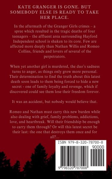 KATE GRANGER IS GONE. BUT SOMEBODY ELSE IS READY TO TAKE HER PLACE. In the aftermath of the Granger Girls crimes - a spree which resulted in the tragic deaths of four teenagers - the affluent area surrounding Hayford Independent school is shaken to its core. Few are affected more deeply than Nathan Willis and Romeo Collins, friends and lovers of several of the perpetrators. When yet another girl is murdered, the duo's sadness turns to anger, as things only grow more personal. Their determination to find the truth about this latest death soon leads to them being forced to hide a new secret - one of family loyalty and revenge, which if discovered could see them lose their freedom forever. It was an accident, but nobody would believe that. Romeo and Nathan must carry this new burden while also dealing with grief, family problems, addictions, love, and heartbreak. Will their friendship be enough to carry them through? Or will this latest secret be their last: the one that destroys them once and for all?...