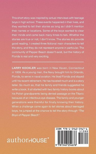 This short story was inspired by actual interviews with teenage boys in high school. These events happened in their lives, and they wanted to tell their stories as long as I didnt mention their names or locations. Some of the boys wanted to clear their minds and came back many times to talk. Whether the stories are true or not, I dont know. The stories do provide good reading. I created three fictional main characters to tell the story, and they do not represent anyone in particular. The community of Pepper Beach doesnt exist, but the history of Florida is real and very exciting.