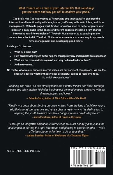 What if there was a map of your internal life that could help you see where and why you fail to achieve your goals? The Brain Hut: The Importance of Proactivity and Intentionality, explores the intersection of intentionality with imagination, self-care, self-control, fear, and time management. Within its pages you'll find an innovative map to better organize your ideas on a daily basis in the scope of different aspects or rooms. From sharing interesting real-life examples of The Brain¿ Hut in action to expanding on the neuroscience behind it, The Brain Hut introduces readers to a new way to approach time management and developing good habits. Inside, you'll discover:What IS a brain hut? How can knowing myself better help me manage my day and regulate my responses? What are the rooms within my mind, and why do I need to know them? And many more... No matter who we are, our own internal voices are our constant companions. We are the ones who decide whether those voices are helpful guides or fearsome foes. So which do you choose?