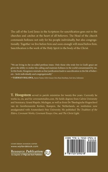 The call of the Lord Jesus in the Scriptures for sanctification goes out to the churches and catches at the heart of all believers. The Head of the church commands holiness not only for his people individually, but also congregationally. Together we live before him and soon enough will stand before him. Sanctification is the work of the Holy Spirit in the body of the Christ.