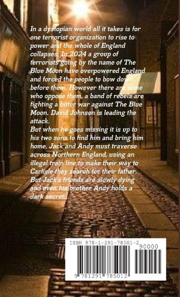 In a dystopian world all it takes is for one terrorist organization to rise to power and the whole of England collapses. In 2024 a group of terrorists going by the name of The Blue Moon have overpowered England and forced the people to bow down before them. However there are some who oppose them, a band of rebels are fighting a bitter war against The Blue Moon. David Johnson is leading the attack. But when he goes missing it is up to his two sons to find him and bring him home, Jack and Andy must traverse across Northern England, using an illegal train line to make their way to Carlisle they search for their father. But Jack's friends are slowly dying and even his brother Andy holds a dark secret... **IMPORTANT** This was a school project, therefore written under great time pressure. Thus could I please ask that you understand I am ONLY a teenager and liable to make any such inaccuracies/faults you may happen to pick up on during reading. Thank you.