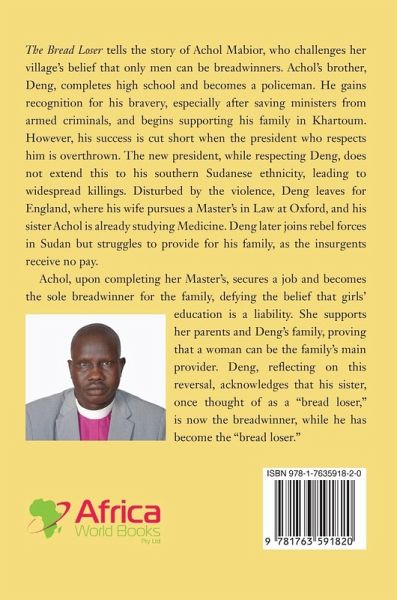 The Bread Loser is a story about a girl, Achol Mabior, who becomes a breadwinner, contrary to the common belief in her village that a man is often a breadwinner. Achol's brother, Deng Mabior, only completes high school and joins police training to become a policeman. After graduating from the police training centre, he is deployed in the headquarters of the Vice President as one of the diplomatic police personnel. Deng is fearless. He saves ministers held hostages by armed criminals. He gets promoted because of his bravery and starts caring for the Khartoum family. His success ends quickly after the president who respects him is overthrown. The new president still respects Deng but cannot respect his ethnic southern Sudanese, who are accused of siding with rebels in the South. They are murdered in cold blood every day. Deng is not happy with the killing of innocent civilians. Not long after overthrowing his former president, Deng left Khartoum for England, so his wife could pursue a Master's Degree in Law at the University of Oxford, where his sister Achol is already pursuing a Master's Degree in Medicine. He then never goes back to Khartoum. He decides to fly to Ethiopia and join the rebels' training camp. After graduating with others, he goes to the battlefield in Sudan as a captain. His bravery again leads to his fame among the rebels. However, he cannot care for his family and parents since the insurgents are not paid. Achol becomes the sole breadwinner in the family. She gets a job immediately after completing her master's at Oxford. She gets married too and still cares for her parents and her brother's family. This is contrary to the belief that a girl is an education liability who takes away her education from her parent's house to her husband's home. Parents at Baping Village are reluctant to educate their daughters because of this. Deng and his parents understand now that Achol has become a breadwinner and Deng has become a loser. Deng says, 'My parents seemed to think I would be the family's breadwinner. My sister wondered whether she was a bread loser. The reality now is that I am the bread loser.'
