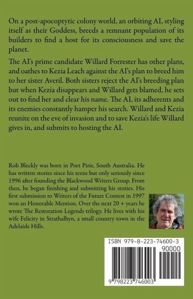 On a post-apocoptytic colony world an orbiting AI, styling itself as their Godess, breeds a remnant population of its builders to find a host for its consciousness and save the planet. Prime candidate Willard Forrester has other plans, and oathes to Kezia Leach against the AI's plan to breed him to her sister Averil Leach. Both sisters reject the AI's breeding plan but when Kezia disappears and Willard gets blamed, he sets out to find her and clear his name. The AI, its adherents and its enemies constantly hamper his search. Willard and Kezia reunite on the eve of invasion and to save Kezia's life Willard gives in, and submits to hosting the AI.