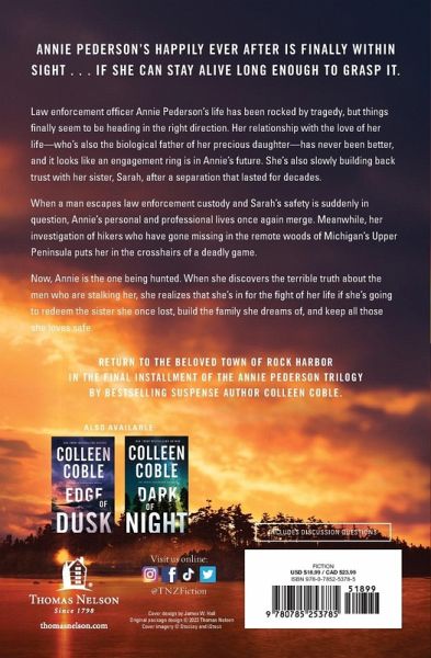 The third book in USA TODAY bestselling romantic suspense author Colleen Cobleâ s Annie Pederson Series (following Dark of Night) returns to fan-favorite Rock Harbor as Annieâ s happily ever after is finally within sight . . . If she can stay alive long enough to grasp it. Perfect for fans of Terri Blackstock, Dani Pettrey, and Lisa Harris.