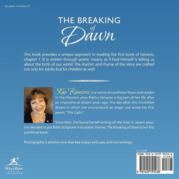 This book provides a unique approach in reading the first book of Genesis, chapter 1. It is written through poetic means, as if God Himself is telling us about the birth of our world. The rhythm and rhyme of the story are crafted not only for adults but for children as well.
