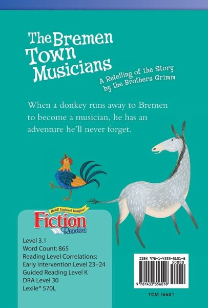 In this tale, a donkey, a dog, a cat, and a rooster have all become too old to be useful on their farms. They decide to go on a journey to Bremen together where they will all become musicians. Along the way, they find a home that has been robbed! The animals use all of their power to sing and frighten the robbers away. After doing their good deeds, the animals make it to Bremen where they succeed in the dream of becoming famous musicians. While young readers will enjoy the amusing illustrations, they will also take away an important lesson: It's never too late to follow your dreams!