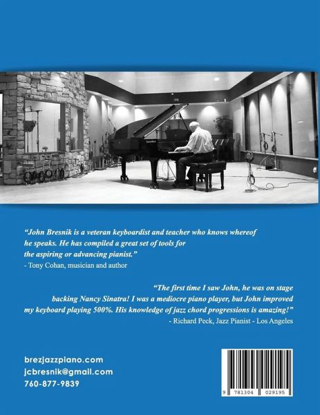 This book is about my approach to jazz piano playing based on one of the primary styles of the 40s and 50s. I studied with Sam Saxe, originally from New York. When I studied with him in the mid-fifties, he was one of the top jazz piano teachers in Hollywood at that time. My book is broken down into a series of tips - "55 tips from an old pro" - of these 55 tips, 32 relate to playing and rest relate to the general lifestyle of the jazz pianist. Seventy years of piano playing condensed into seventy pages..!