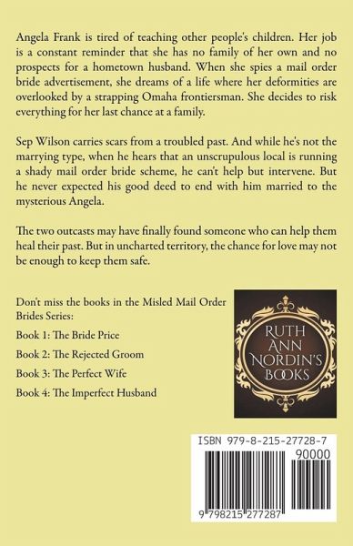 Angela Frank is tired of teaching other people's children. Her job is a constant reminder that she has no family of her own and no prospects for a hometown husband. When she spies a mail order bride advertisement, she dreams of a life where her deformities are overlooked by a strapping Omaha frontiersman. She decides to risk everything for her last chance at a family. Sep Wilson carries scars from a troubled past. And while he's not the marrying type, when he hears that an unscrupulous local is running a shady mail order bride scheme, he can't help but intervene. But he never expected his good deed to end with him married to the mysterious Angela. The two outcasts may have finally found someone who can help them heal their past. But in uncharted territory, the chance for love may not be enough to keep them safe.