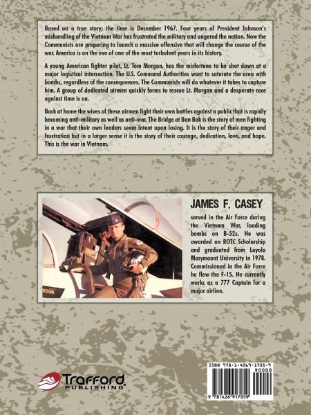 Based on a true story; the time is December 1967. Four years of President Johnson's mishandling of the Vietnam War has frustrated the military and angered the nation. Now the Communists are preparing to launch a massive offensive that will change the course of the war. America is on the eve of one of the most turbulent years in its history. A young American fighter pilot, Lt. Tom Morgan, has the misfortune to be shot down at a major logistical intersection. The U.S. Command Authorities want to saturate the area with bombs, regardless of the consequences. The Communists will do whatever it takes to capture him. A group of dedicated airmen quickly forms to rescue Lt. Morgan and a desperate race against time is on. Back at home the wives of these airmen fight their own battles against a public that is rapidly becoming anti-military as well as anti-war. The Bridge at Ban Bak is the story of men fighting in a war that their own leaders seem intent upon losing. It is the story of their anger and frustration but in a larger sense it is the story of their courage, dedication, love, and hope. This is the war in Vietnam.