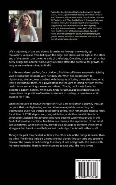 Life is a journey of ups and downs. It carries us through the woods, up mountains, keeps us from falling off the edge, and shows us the light at the other end of the tunnel ... or the other side of the bridge. One thing that's certain is that every bridge has another side. Every outcome offers the potential for growth, as long as we are determined to find it. In a life considered perfect, Cara Lindberg finds herself taken away each night by vivid dreams that resonate with her daily life. When her dreams turn to nightmares, she becomes troubled with thoughts of losing those she loves, or at least a life without them. As a psychiatrist, the thought of losing her own mental health is not something she ever considered. That is, until she is forced to become a patient herself. When Cara finds herself at a point of darkness, she moves from the position of teacher to student to undergo a new therapeutic practice for PTSD. When introduced to MDMA therapy for PTSD, Cara sets off on a journey through her past that is enlightening and somehow manageable, something her traumatized brain had trouble recollecting before. With remarkable success rates for victims of PTSD, depression, drug addiction, and other mental disorders, psychedelic-assisted therapy practices have become widely recognized in the field of alternative medicine. Much like our dreams, the exploration of our mind can sometimes, when controlled, provide us a passage to confront the internal struggles that haunt us and help us find the bridge that is built within us all. Though the past may be dark at times, the other side of the bridge is nearer than we think. The Bridge Inside is a narrative that travels through time and space to discover the power of self-healing. In a story of loss and growth, this is one with no rescuing figure. There is no one coming to save you. The hero is you.