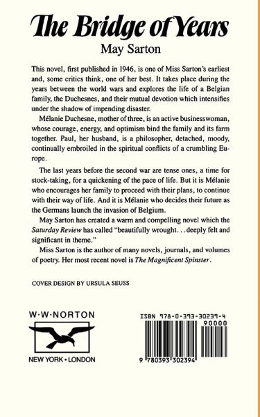 This novel, first published in 1946, is one of May Sarton's earliest and, some critics think, one of her best. It takes place during the years between the world wars and explores the life of a Belgian family, the Duchesnes, and their mutual devotion which intensifies under the shadow of impending disaster. Mélanie Duchesne, mother of three, is an active businesswoman, whose courage, energy, and optimism bind the family and its farm together. Paul, her husband, is a philosopher, detached, moody, continually embroiled in the spiritual conflicts of a crumbling Europe. The last years before the second war are tense ones, a time for stock-taking, for a quickening of the pace of life. But it is Mélanie who encourages her family to proceed with their plans, to continue with their way of life. And it is Mélanie who decides their future as the Germans launch their invasion of Belgium.