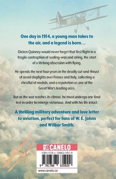 One day in 1914, a young man took to the air, and a legend was born... Dicken Quinney never forgot that first flight in a fragile contraption of sealing-wax and string, the start of a lifelong obsession with flying. He was to spend the next four years in the deadly cut-and-thrust of aerial dogfights over France and Italy, collecting a chestful of medals, and a reputation as one of the Great War's leading aces. He would hone his skills in an array of aircraft, and as the war reaches its climax, he must undergo one final test in order to emerge victorious. And with his life intact. A love letter to aviation, perfect for fans of W. E. Johns and Wilbur Smith.