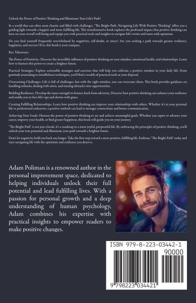 Unlock the Power of Positive Thinking and Illuminate Your Life's Path! In a world that can often seem chaotic and filled with challenges, "The Bright Path: Navigating Life With Positive Thinking" offers you a guiding light towards a happier and more fulfilling life. This transformative book explores the profound impact that positive thinking can have on your overall well-being and equips you with practical tools and insights to navigate life's twists and turns with optimism. Do you find yourself frequently overwhelmed by negativity, self-doubt, or stress? Are you seeking a path towards greater resilience, happiness, and success? If so, this book is your compass. Key Takeaways: The Power of Positivity: Discover the incredible influence of positive thinking on your mindset, emotional health, and relationships. Learn how to harness this power to create a brighter future. Practical Strategies: Explore actionable strategies and exercises that will help you cultivate a positive mindset in your daily life. From gratitude journaling to mindfulness techniques, you'll find a wealth of practical tools at your disposal. Overcoming Challenges: Life is full of challenges, but with the right mindset, you can overcome them. This book provides guidance on handling setbacks, dealing with stress, and turning obstacles into opportunities. Building Resilience: Develop the inner strength to bounce back from adversity. Discover how positive thinking can enhance your resilience and enable you to face life's ups and downs with grace. Creating Fulfilling Relationships: Learn how positive thinking can improve your relationships with others. Whether it's in your personal life or professional endeavors, a positive outlook can lead to stronger connections and better communication. Achieving Your Goals: Harness the power of positive thinking to set and achieve meaningful goals. Whether you aspire to advance your career, improve your health, or find greater happiness, this book will guide you on your journey. "The Bright Path" is not just a book; it's a roadmap to a more joyful, purposeful life. By embracing the principles of positive thinking, you'll unlock your true potential and illuminate your path towards a brighter future. Don't let negativity hold you back any longer. Take the first step toward a more positive, fulfilling life. Embrace "The Bright Path" today and start navigating life with the optimism and resilience you deserve.