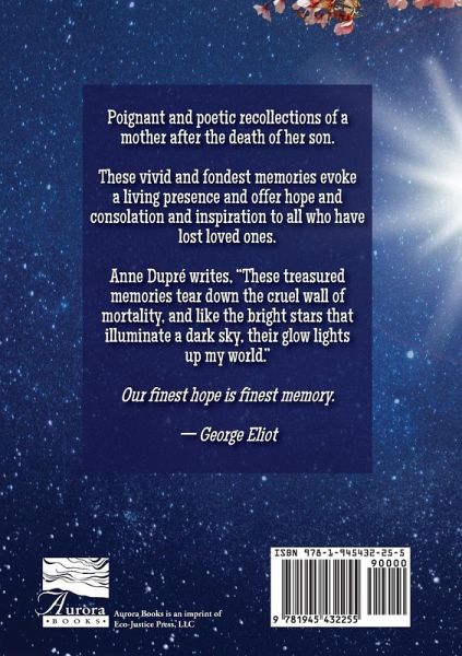 Poignant and poetic recollections of a mother after the death of her son. These vivid and fondest memories evoke a living presence and offer hope and consolation and inspiration to all who have lost loved ones. Anne Dupré writes, "These treasured memories tear down the cruel wall of mortality, and like the bright stars that illuminate a dark sky, their glow lights up my world." Our finest hope is finest memory. - George Eliot
