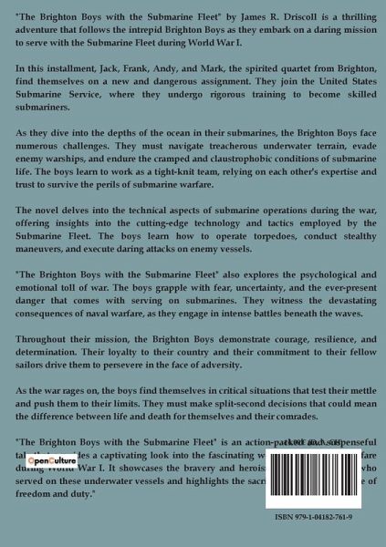 "The Brighton Boys with the Submarine Fleet" by James R. Driscoll is a thrilling adventure that follows the intrepid Brighton Boys as they embark on a daring mission to serve with the Submarine Fleet during World War I. In this installment, Jack, Frank, Andy, and Mark, the spirited quartet from Brighton, find themselves on a new and dangerous assignment. They join the United States Submarine Service, where they undergo rigorous training to become skilled submariners. As they dive into the depths of the ocean in their submarines, the Brighton Boys face numerous challenges. They must navigate treacherous underwater terrain, evade enemy warships, and endure the cramped and claustrophobic conditions of submarine life. The boys learn to work as a tight-knit team, relying on each other's expertise and trust to survive the perils of submarine warfare. The novel delves into the technical aspects of submarine operations during the war, offering insights into the cutting-edge technology and tactics employed by the Submarine Fleet. The boys learn how to operate torpedoes, conduct stealthy maneuvers, and execute daring attacks on enemy vessels. "The Brighton Boys with the Submarine Fleet" also explores the psychological and emotional toll of war. The boys grapple with fear, uncertainty, and the ever-present danger that comes with serving on submarines. They witness the devastating consequences of naval warfare, as they engage in intense battles beneath the waves. Throughout their mission, the Brighton Boys demonstrate courage, resilience, and determination. Their loyalty to their country and their commitment to their fellow sailors drive them to persevere in the face of adversity. As the war rages on, the boys find themselves in critical situations that test their mettle and push them to their limits. They must make split-second decisions that could mean the difference between life and death for themselves and their comrades. "The Brighton Boys with the Submarine Fleet" is an action-packed and suspenseful tale that provides a captivating look into the fascinating world of submarine warfare during World War I. It showcases the bravery and heroism of the young men who served on these underwater vessels and highlights the sacrifices made in the name of freedom and duty."