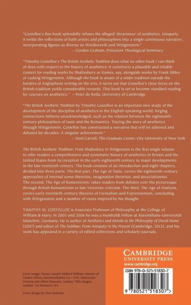 The British Aesthetic Tradition: From Shaftesbury to Wittgenstein is the first single volume to offer readers a comprehensive and systematic history of aesthetics in Britain from its inception in the early eighteenth century to major developments in Britain and beyond in the late twentieth century. The book consists of an introduction and eight chapters, and is divided into three parts. The first part, The Age of Taste, covers the eighteenth-century approaches of internal sense theorists, imagination theorists and associationists. The second, The Age of Romanticism, takes readers from debates over the picturesque through British Romanticism to late Victorian criticism. The third, The Age of Analysis, covers early twentieth-century theories of Formalism and Expressionism to conclude with Wittgenstein and a number of views inspired by his thought.