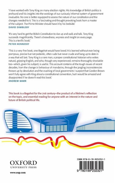 In the latter part of the nineteenth century Walter Bagehot wrote a classic account of the British constitution as it had developed during Queen Victoria's reign. He argued that the late Victorian constitution was not at all what people thought it was. Anthony King argues that the same is true at the beginning of this century. Most people are aware that major constitutional changes have taken place, but few recognize that their cumulative effect has been to change entirely the nature of Britain's constitutional structure. The old constitution has gone. The author insists that the new constitution is a mess, but one that we can make the best of. The British Constitution is neither a reference book nor a textbook. Like Bagehot's classic, it is written with wit and mordant humour-by someone who is a journalist and political commentator as well as a distinguished academic. The author maintains that, while the new British constitution is a mess, there is no going back now. 'As always', he says, 'nostalgia is a good companion but a bad guide.' Far from shying away from the thorniest issues facing the British polity today, the author grapples with them head on. He offers a trenchant analysis of the increasingly divergent relationship between England, Scotland and Wales in the light of devolution and a devastating critique of an all-elected House of Lords, whose benches, the author fears, risk being adorned by 'a miscellaneous assemblage of party hacks, political careerists, clapped-out retired or defeated MPs, has-beens, never-were's and never-could-possibly-be's'. The book is a Bagehot for the twenty-first century - the product of a lifetime's reflection on British politics and essential reading for anyone interested in how the British system has changed and how it is likely to change in future.