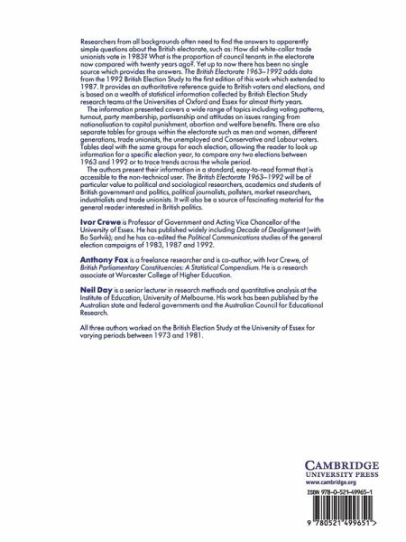 The British Electorate 1963-1992 adds data from the 1992 British Election Study to the first edition of this work which extended to 1987. It provides an authoritative reference guide to British voters and elections, and is based on a wealth of statistical information collection by British Election Study research teams at the Universities of Oxford and Essex for almost thirty years.