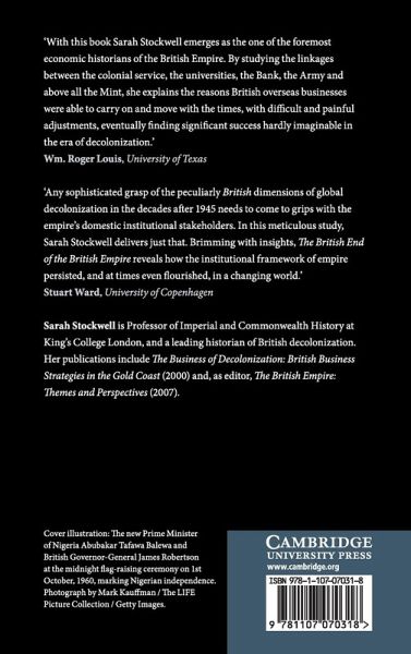 Sarah Stockwell is professor of imperial and Commonwealth history at King's College London, and a leading historian of British decolonization. Her publications include The Business of Decolonization: British Business Strategies in the Gold Coast (2000) and, as editor, The British Empire: Themes and Perspectives (2008).