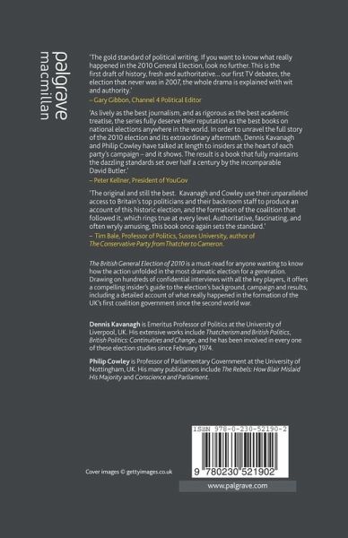 'As lively as the best journalism and as rigorous as the best academic treatise, the ... series fully deserve their reputation as the best books on national elections anywhere in the world. In order to unravel the full story of the 2010 election and its extraordinary aftermath, Dennis Kavanagh and Philip Cowley have talked at length to insiders at the heart of each party's campaign and it shows. The result is a book that fully maintains the dazzling standards set over half a century by the incomparable David Butler.'