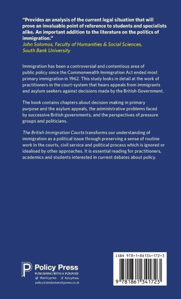 Immigration has been a controversial and contentious area of public policy since the Commonwealth Immigration Act ended most primary immigration in 1962. This study looks in detail at the work of practitoners in the court-system that hears appeals from immigrants and asylum seekers against decisions made by the British Government.
