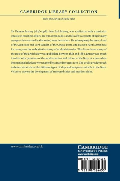 Sir Thomas Brassey (1836-1918), later Earl Brassey, was a politician with a particular interest in maritime affairs. He was a keen sailor, and his wife's accounts of their many voyages (also reissued in this series) were bestsellers. He subsequently became a Lord of the Admiralty and Lord Warden of the Cinque Ports, and Brassey's Naval Annual was for many years the authoritative survey of worldwide navies. This five-volume survey of the state of the British Navy was published between 1882 and 1883. Brassey was much involved with questions of the modernisation and reform of the Navy, at a time when international relations were marked by a maritime arms race. The books provide much technical detail about the different types of ship and weapons available to the Navy. Volume 1 surveys the development of armoured ships and mastless ships.