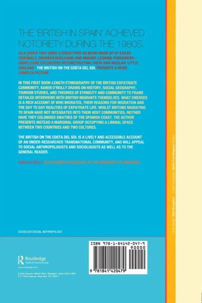 The 'British in Spain' achieved notoriety during the 1980s. As a group they were stereotyped as being made up of exiled criminals, drunken hooligans and inward looking pensioners - unwelcome colonisers reconstructing their own insular 'little England'. The British on the Costa del Sol presents a more complex picture. In this first book length ethnography of the British expatriate community, Karen O'Reilly draws on history, social geography, tourism studies, and theories of ethnicity and community to frame detailed interviews with British migrants themselves. What emerges is a rich account of who migrates, their reasons for migration and the day to day realities of expatriate life. Whilst Britons migrating to Spain have not integrated into their host communities, neither have they colonised swathes of the Spanish coast. The author presents instead a marginal group occupying a liminal space between two countries and two cultures. The British on the Costa del Sol is a lively and accessible account of an under researched transnationl community, and will appeal to social anthropologists and sociologists as well as to the general reader.