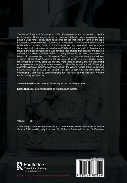 The British School of Sculpture, c. 1760-1832 represents the first edited collection exploring one of the most significant moments in British art history, returning to centre stage a wide range of sculpture considered for the first time by some of the most important scholars in the field. Following a historical and historiographical introduction by the editors, situating British sculpture in relation to key events and developments in the period, and the broader scholarship on British art more generally in the period and beyond, the book contains nine wide-ranging case studies that consider the place of antique and modern sculpture in British country houses in the period, monuments to heroes of commerce and the Napoleonic Wars, the key debates fought around ideal sculpture at the Royal Academy, the reception of British sculpture across Europe, the reception of Hindu sculpture deriving from India in Britain, and the relationship of sculpture to emerging industrial markets, both at home and abroad. Challenging characterisations of the period as 'neoclassical', the volume reveals British sculpture to be a much more eclectic and various field of endeavour, both in service of the state and challenging it, and open to sources ranging from the newly arrived Parthenon Frieze to contemporary print culture.