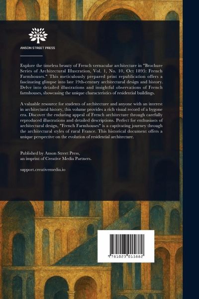 Explore the timeless beauty of French vernacular architecture in "Brochure Series of Architectural Illustration, Vol. 1, No. 10, Oct 1895: French Farmhouses." This meticulously prepared print republication offers a fascinating glimpse into late 19th-century architectural design and history. Delve into detailed illustrations and insightful observations of French farmhouses, showcasing the unique characteristics of residential buildings. A valuable resource for students of architecture and anyone with an interest in architectural history, this volume provides a rich visual record of a bygone era. Discover the enduring appeal of French architecture through carefully reproduced illustrations and detailed descriptions. Perfect for enthusiasts of architectural design, "French Farmhouses" is a captivating journey through the architectural styles of rural France. This historical document offers a unique perspective on the evolution of residential architecture. This work has been selected by scholars as being culturally important, and is part of the knowledge base of civilization as we know it. This work is in the public domain in the United States of America, and possibly other nations. Within the United States, you may freely copy and distribute this work, as no entity (individual or corporate) has a copyright on the body of the work. Scholars believe, and we concur, that this work is important enough to be preserved, reproduced, and made generally available to the public. We appreciate your support of the preservation process, and thank you for being an important part of keeping this knowledge alive and relevant.