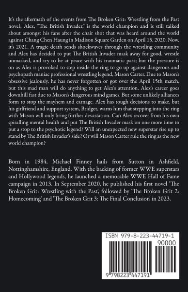 It's the aftermath of the events from The Broken Grit: Wrestling from the Past novel; Alex, "The British Invader," is the world champion and is still talked about amongst his fans after the chair shot that was heard around the world against Chang Chen Haung in Madison Square Garden on April 15, 2020. Now, it's 2021, A tragic death sends shockwaves through the wrestling community and Alex has decided to put The British Invader mask away for good, wrestle unmasked, and try to be at peace with his traumatic past; but the pressure is on as Alex is provoked to step inside the ring to go up against dangerous and psychopath maniac professional wrestling legend, Mason Carter. Due to Mason's obsessive jealously, he has never forgotten or got over the April 15th match, but this mad man will do anything to get Alex's attention. Alex's career goes downhill fast due to Mason's dangerous mind games. But some unlikely alliances form to stop the mayhem and carnage. Alex has tough decisions to make, but his girlfriend and support system, Bridget, warns him that stepping into the ring with Mason will only bring further devastation. Can Alex recover from his own spiralling mental health and put The British Invader mask on one more time to put a stop to the psychotic legend? Will an unexpected new superstar rise up to stand by The British Invader's side? Or will Mason Carter rule the ring as the new world champion?