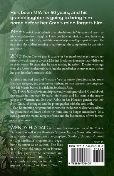 1969 Martin Carter's plan is to survive his tour in Vietnam and return to his wife and newborn daughter. He refused his commission to keep from lying to his men but ultimately becomes a leader to his team and to a small group of Vietnamese villagers. He must find whoever is running drugs through the camp before he can safely get home. 2019 Robin Carter's plan is to care for her grandmother and restart her career after a disastrous divorce. Martin's footlocker is unexpectedly delivered to their home-he's been missing in action since 1969. His journals record his harrowing sixteen months in Vietnam. Robin is determined to find the grandfather she never knew before her grandmother's memories fade. The Broken Hallelujah is a heart-wrenching tale of family, the lasting impact of lies, and the human consequences of truth.