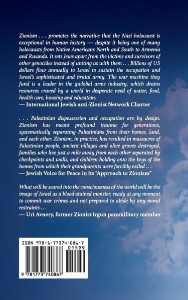 Zionism . . . promotes the narrative that the Nazi holocaust is exceptional in human history - despite it being one of many holocausts from Native Americans North and South to Armenia and Rwanda. It sets Jews apart from the victims and survivors of other genocides instead of uniting us with them . . . Billions of US dollars flow annually to Israel to sustain the occupation and Israel's sophisticated and brutal army. The war machine they fund is a leader in the global arms industry, which drains resources craved by a world in desperate need of water, food, health care, housing and education. - International Jewish anti-Zionist Network Charter . . .Palestinian dispossession and occupation are by design. Zionism has meant profound trauma for generations, systematically separating Palestinians from their homes, land, and each other. Zionism, in practice, has resulted in massacres of Palestinian people, ancient villages and olive groves destroyed, families who live just a mile away from each other separated by checkpoints and walls, and children holding onto the keys of the homes from which their grandparents were forcibly exiled . . . - Jewish Voice for Peace in its "Approach to Zionism" What will be seared into the consciousness of the world will be the image of Israel as a blood-stained monster, ready at any moment to commit war crimes and not prepared to abide by any moral restraints . . . - Uri Avnery, former Zionist Irgun paramilitary member