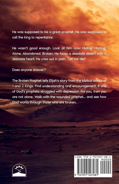 He was supposed to be a great prophet. He was supposed to call the king to repentance. He wasn't good enough. Look at him now: Hiding. Hurting. Alone. Abandoned. Broken. He faces a desolate desert with a desolate heart. He cries out in pain, "Let me die!" Does anyone answer? The Broken Prophet tells Elijah's story from the biblical books of 1 and 2 Kings. Find understanding and encouragement. If one of God's prophets struggled with depression like you, then you are not alone. Walk with the wounded prophet . . . and see how God works through those who are broken.