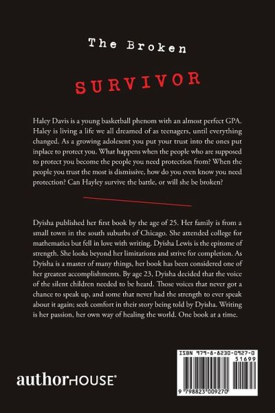 Haley Davis is a young basketball phenom with an almost perfect GPA. Haley is living a life we all dreamed of as teenagers, until everything changed. As a growing adolesent you put your trust into the ones put inplace to protect you. What happens when the people who are supposed to protect you become the people you need protection from? When the people you trust the most is dismissive, how do you even know you need protection? Can Hayley survive the battle, or will she be broken?