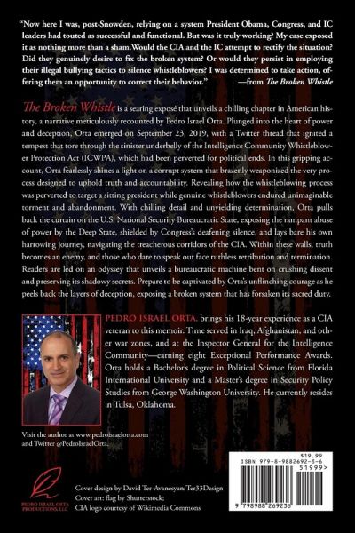 The Broken Whistle is a searing exposé that unveils a chilling chapter in American history, a narrative meticulously recounted by Pedro Israel Orta. Plunged into the heart of power and deception, Orta emerges as a force to be reckoned with. On September 23, 2019, his single Twitter thread ignited a tempest, tearing through the sinister underbelly of the Intelligence Community Whistleblower Protection Act (ICWPA), which had been perverted for political ends. In this gripping account, Orta fearlessly shines a light on a corrupt system that brazenly weaponized the very process designed to uphold truth and accountability. As the pages unfold, Orta unflinchingly reveals how the Intelligence Community (IC) whistleblowing process was perverted to target a sitting president, while genuine whistleblowers endured unimaginable torment and abandonment. With chilling detail and unyielding determination, Orta pulls back the curtain on the U.S. National Security Bureaucratic State, exposing the rampant abuse of power by the Deep State, shielded by Congress's deafening silence. Delving deep into the heart of darkness, Orta uncovers the unsettling saga triggered by the enigmatic "Ukraine whistleblower," whose disclosures unleashed a political storm, despite falling outside the jurisdiction of ICIG and DNI, as confirmed by the Department of Justice. These allegations, detached from intelligence activities, were shamelessly exploited-an elaborate ruse orchestrated to manipulate public opinion and orchestrate the impeachment of a president. Through the pages of The Broken Whistle, Orta lays bare his own harrowing journey, navigating the treacherous corridors of the Central Intelligence Agency. Within these walls, truth becomes an enemy, and those who dare to speak out face ruthless retribution and termination. As Orta's unwavering voice rises above the cacophony of corruption, readers are led on an odyssey that unveils a bureaucratic machine bent on crushing dissent and preserving its shadowy secrets. The Broken Whistle is an unapologetic chronicle of one man's fight for justice-a clarion call that reverberates through the darkest corners of power. Prepare to be captivated by Orta's unflinching courage as he peels back the layers of deception, exposing a broken system that has forsaken its sacred duty.