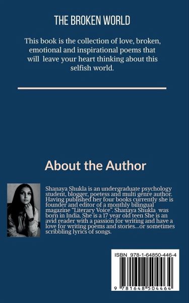 This book consists a collection of Heart broken, sad, inspirational and love poems that will leave your heart wondering about the selfish world......