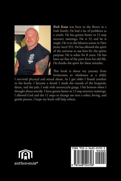 This book is about my journey from brokenness to wholeness as a child. I survived physical and sexual abuse. As I got older I found comfort in the bottle. I became a drunk I made the rounds of the hospitals, detox, and the jails. I rode with motorcycle gangs. I hit bottom when I thought about suicide. I have gotten better in 12 step recovery meetings. I allowed God and the 12 steps to change me into a sober, loving, and gentle person. I hope my book will help others.