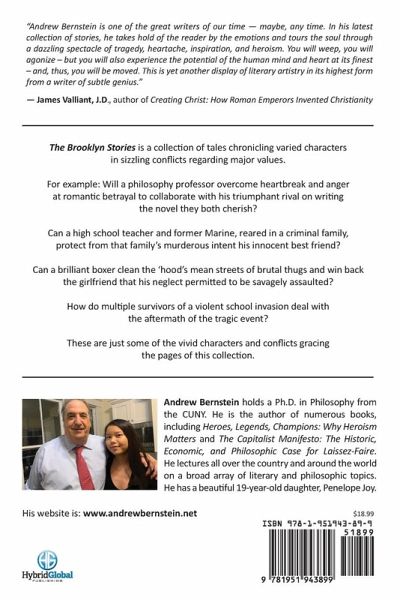 The Brooklyn Stories is a collection of tales chronicling varied characters in sizzling conflicts regarding major values. For example: ¿Will a philosophy professor overcome heartbreak and anger at romantic betrayal to collaborate with his triumphant rival on writing the novel they both cherish? Can a high school teacher and former Marine, reared in a criminal family, protect from that family's murderous intent his innocent best friend? Can a brilliant boxer clean the 'hood's mean streets of brutal thugs and win back the girlfriend that his neglect permitted to be savagely assaulted? How do multiple survivors of a violent school invasion deal with the aftermath of the tragic event? These are just some of the vivid characters and conflicts gracing the pages of this collection.